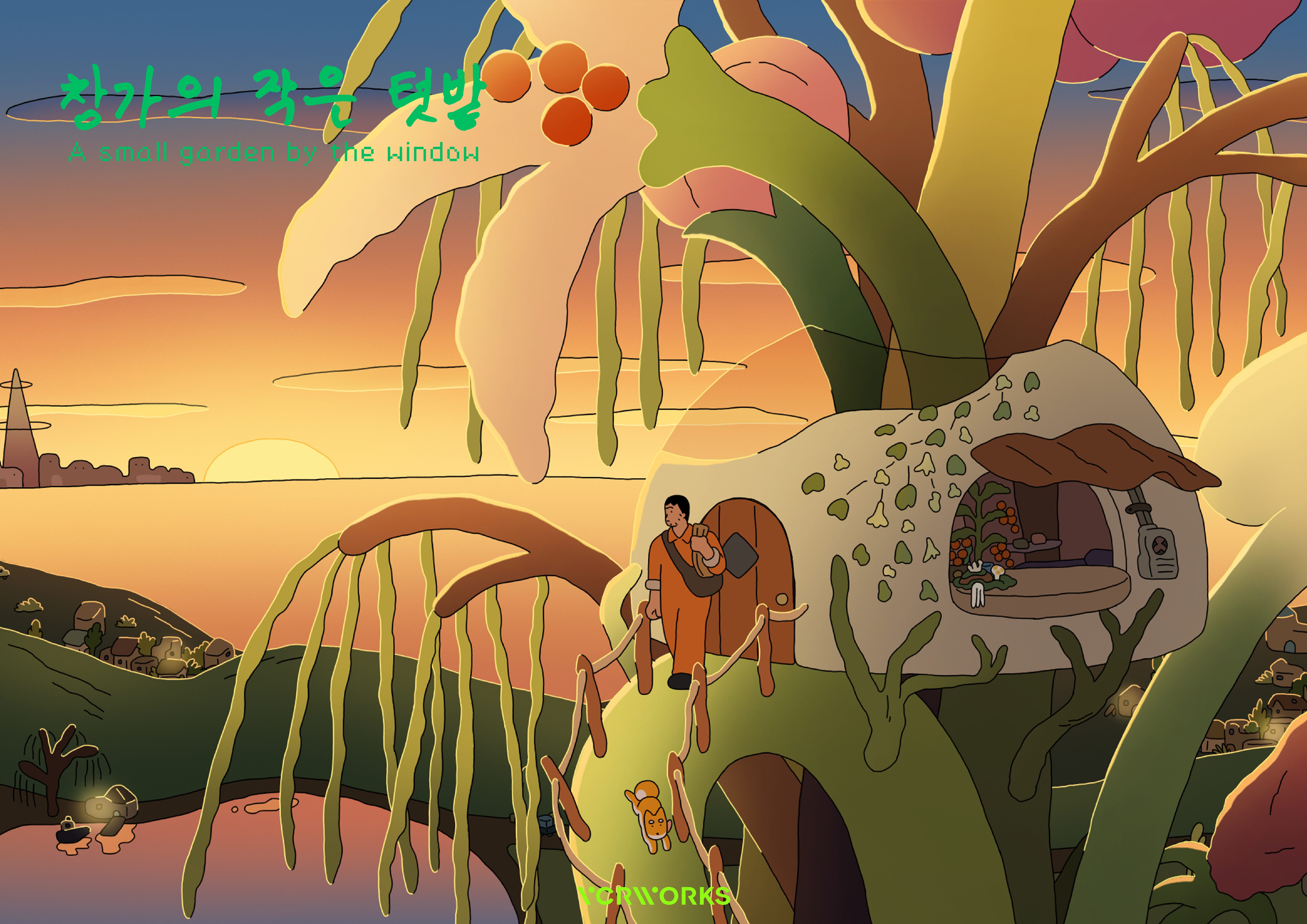 L’architetto raccoglie dei pomodorini maturi da un piccolo orto vicino alla finestra per prepararsi il pranzo da portare al lavoro. Dalle piante di pomodoro si sprigiona una speciale eco-energia. Questa energia, frutto di piccoli gesti di tutela ambientale, accompagna l’architetto nella lotta contro la crisi climatica.