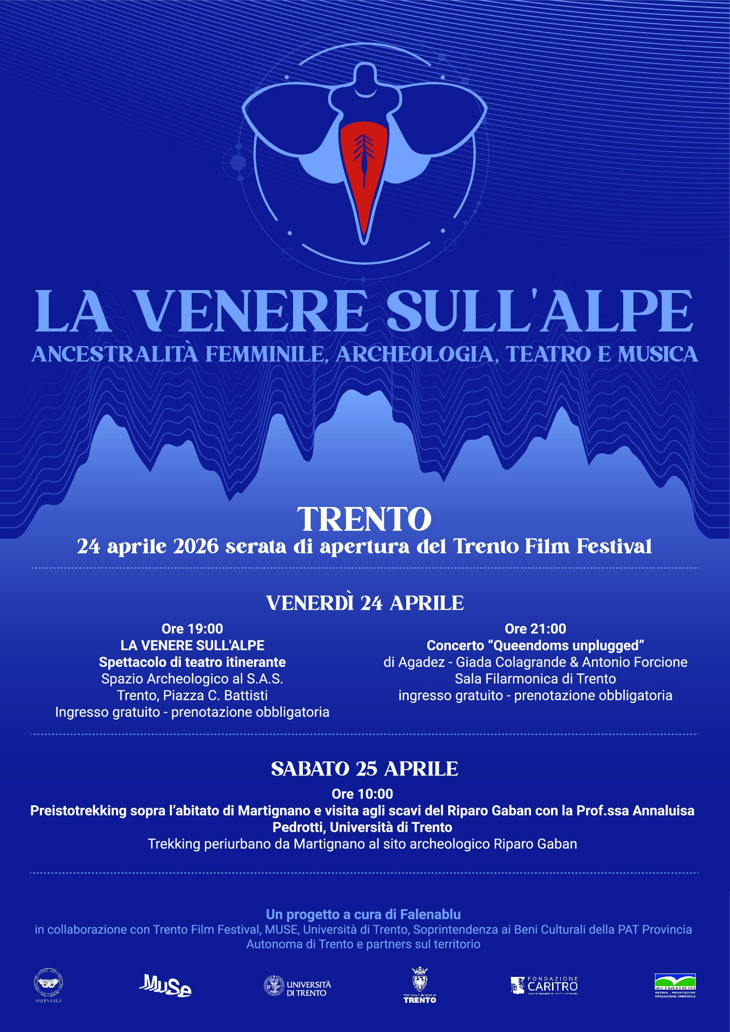 19:00“La Venere sull’Alpe” è un progetto culturale dedicato alla Venere del Gaban, una statuetta neolitica simbolo della Dea Madre, conservata presso il MUSE – Museo delle Scienze e oggetto di studio dell’Università di Trento. A partire da…