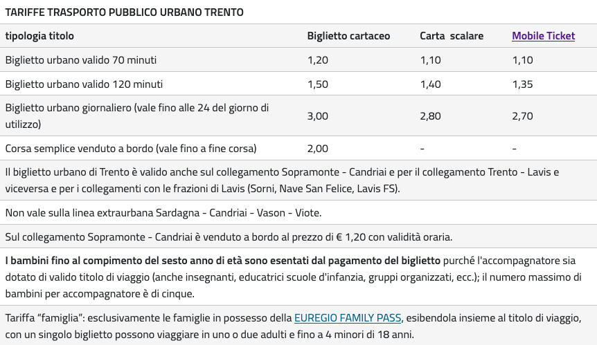 > Tariffe biglietti urbano Trento
